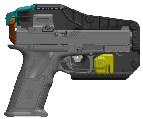 Optics-Ready and Protected — An auto-closing optic cover protects red dot sights without manual input. Suppressor-height co-witness sight channels ensure tall front sight clearance. The optic cover is additionally designed to be anti-snag, deflecting seatbelts, leashes, and other equipment, preventing an accidental opening.